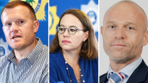 Usihlalo weKomidi lamaphoyisa, u-Ian Cameron, kanye namalungu ePhalamende, uLisa-Maré Schickerling noNicholas Gotsell bahlaselwe. Babesanda kuphuma ekolishi lokuqeqesha lakwa-SAPS ngesikhathi amadoda ahlome ngezitini ezungeza imoto yabo.