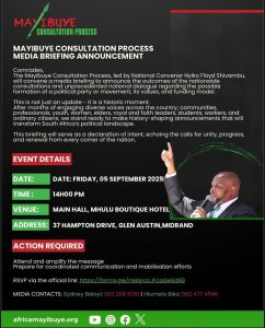 UFloyd Shivambu uzomemezela imiphumela yeMayibuye Consultation Process esithangamini sabezindaba ngoLwesihlanu.
