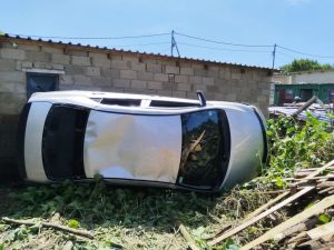 Imoto yabeseyiphenduka yashayisa indlu, yadala nomonakalo esakhiweni.